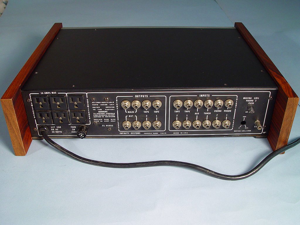 Dieser Vorverstärker wurde ca. mitte / ende der 70er bis Anfang der 80er Jahre gebaut. Er ist meines Wissens der einzige Vorverstärker, den Infinity je gebaut hat. Belehrt mich eines Besseren, wenn es noch andere Vorverstärker gibt und gebt mir dann aber auch die passenden Infos und Bilder dazu. Danke.