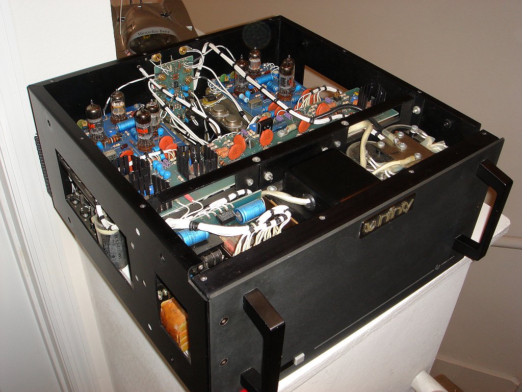 Der oben beschriebene Gedankenträger war Arnie Nudell (ein lebenslanger Röhren-Fanatiker), später Präsident von Infinity. Er hatte diesen genialen Plan. Er wollte Röhren für die Eingangsstufe und Transistoren für die Ausgangsstufe benutzen. Jeder Teil in seinem optimierten Bereich für seine besonderen Fähigkeiten.
